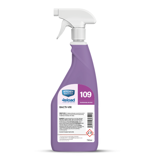 · Suitable for sanitising food preparation areas, display cabinets, shelving, bars and serving areas