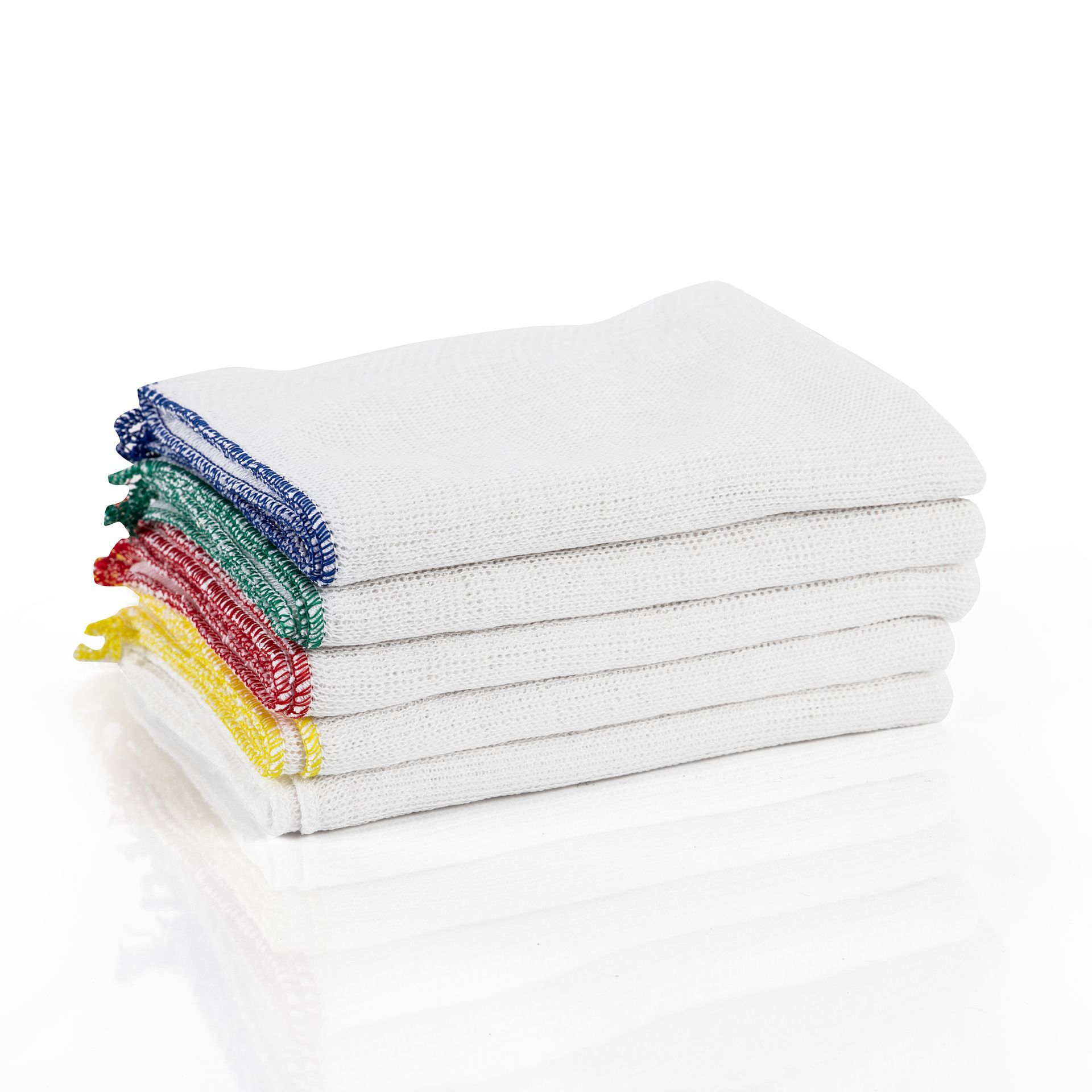 A lightweight circular-knitted traditional and everyday dishcloth which is strong and absorbent for general cleaning. The dishcloth is made in the UK from 100% recycled material and is available with colour coded edging.