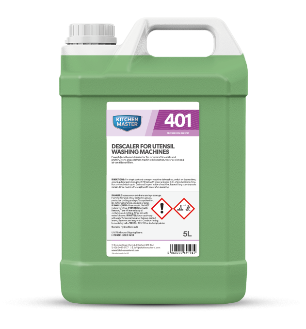 · Hydrochloric acid based descaler for the removal of limescale and protein / stone deposits from machine dishwashers, water coolers and air conditioning filters