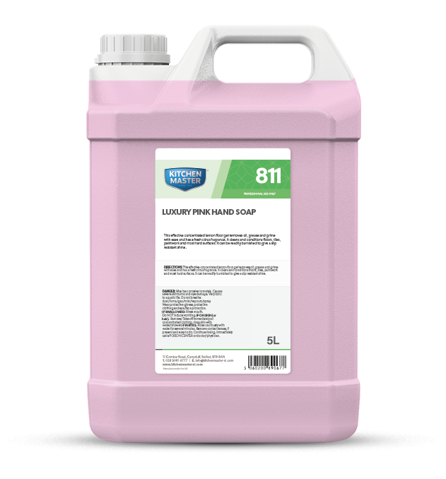 · A pink, viscous, pearlised liquid hand soap